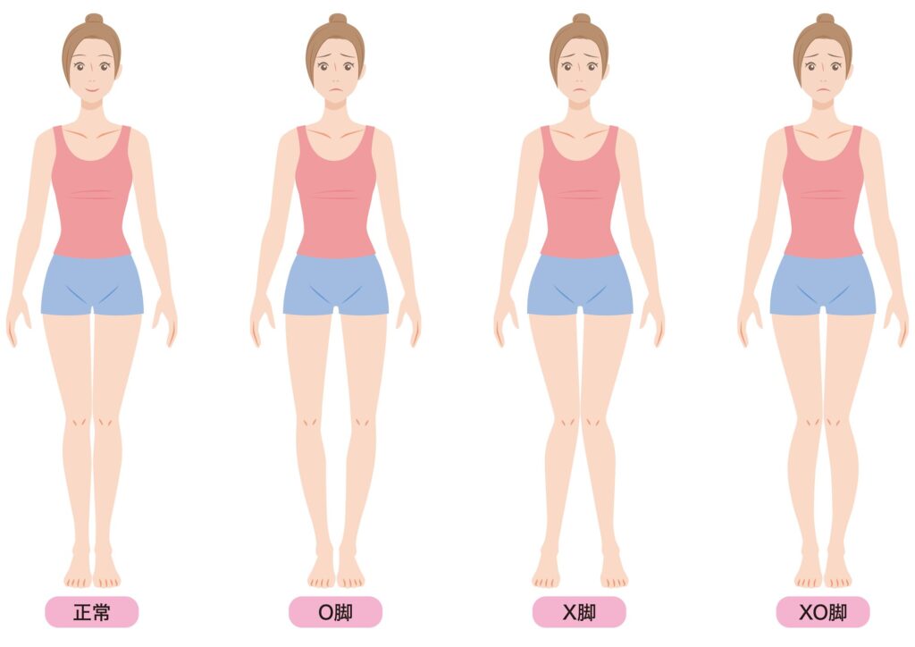 回内していると正面から見た時に膝が内向きになり、下記の画像のような見た目の歪んだ脚になってしまいます。