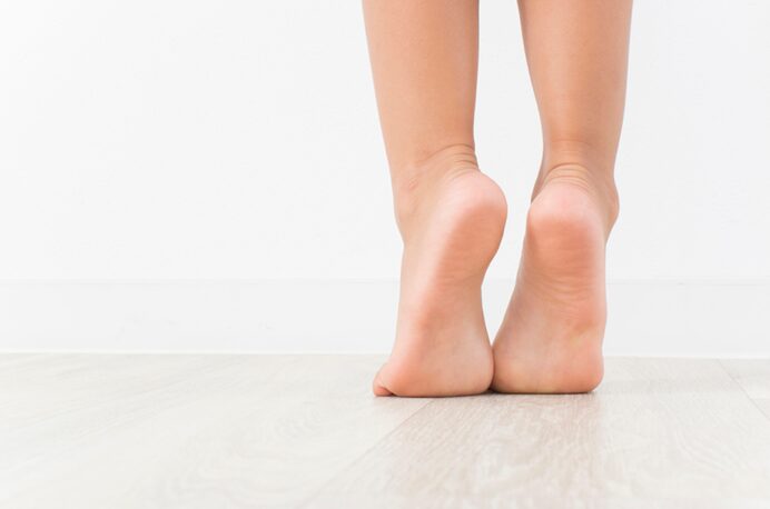 体重が一番かかる身体の部位は足の裏です、まずは立位で膝がうちに向いている方は足のコントロールから始めてみましょう。